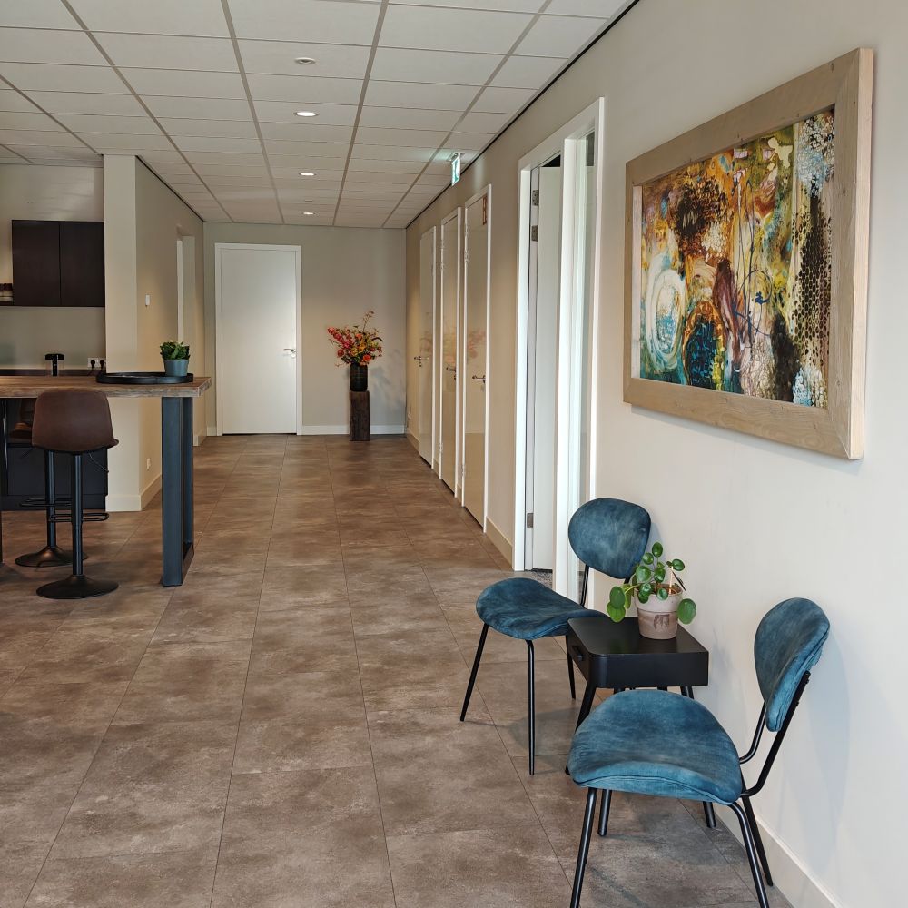 De ruimte is gevestigd in het kantoorpand van ‘10 voor je dag’ van dagvoorzitter en presentatiecoach Tineke Stuifzand. Er is een warme ontvangst, oog voor detail en een omgeving die professioneel en huiselijk aanvoelt.